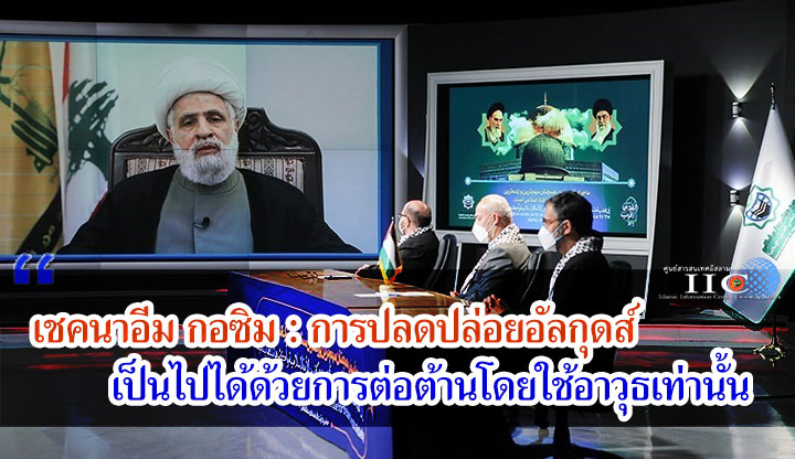 เชคนาอีม กอซิม : การปลดปล่อยอัลกุดส์เป็นไปได้ด้วยการต่อต้านโดยใช้อาวุธเท่านั้นPublished: Monday, 10 May 2021 00:53 | Hits: 1454เชคนาอีม กอซิม รองเลขาธิการฮิซบุลลอฮ์กล่าวในงานสัมมนาทางเว็บในหัวข้อ "วันอัลกุดส์ วันของผู้ถูกกดขี่" ย้ำว่า การปลดปล่อยอัลกุดส์สามารถทำได้โดยการยืนหยัดต่อต้านเท่านั้นโดยเฉพาะการต่อต้านด้วยการใช้อาวุธ…. Read more ...